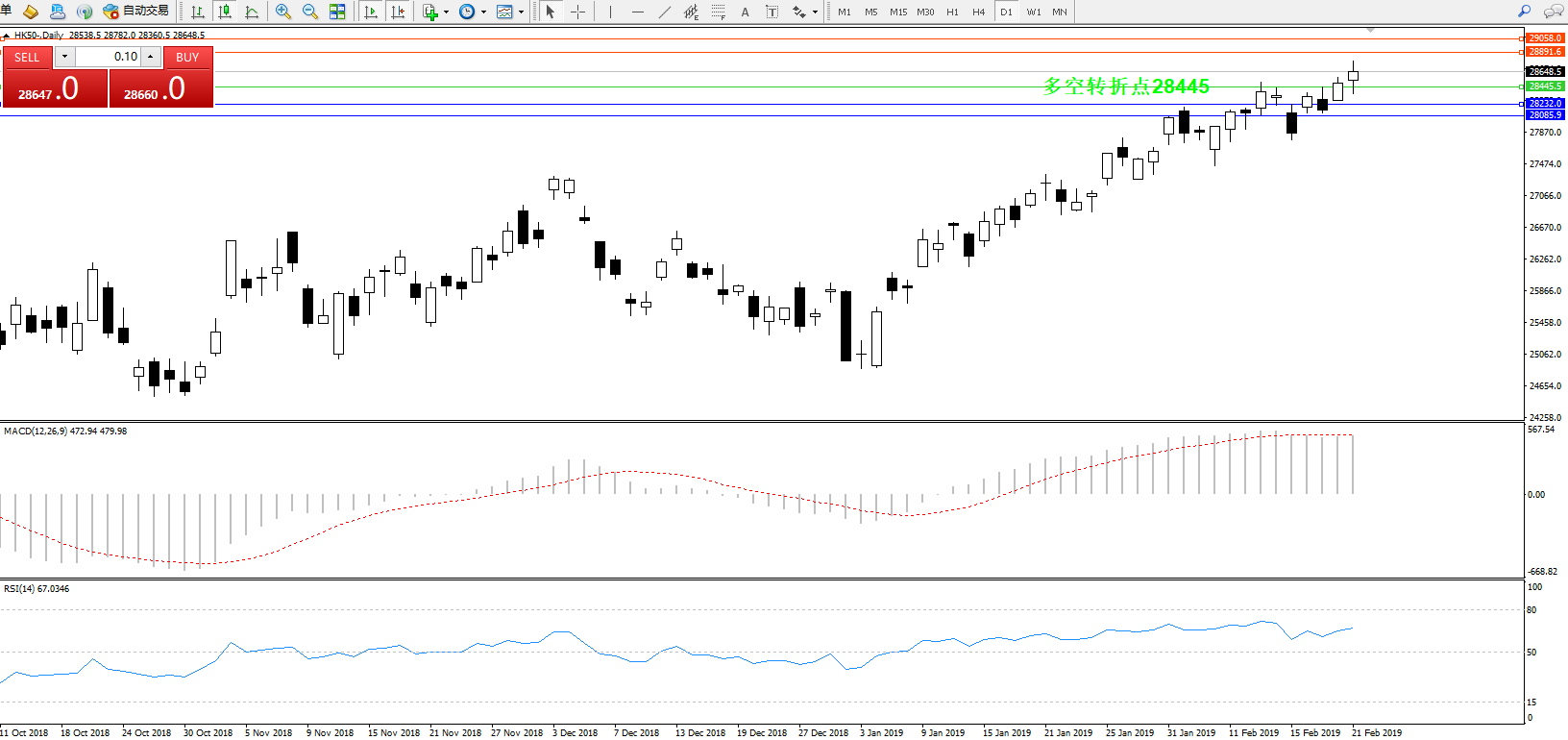 交易策略:28445上方看涨,目标28891、29058