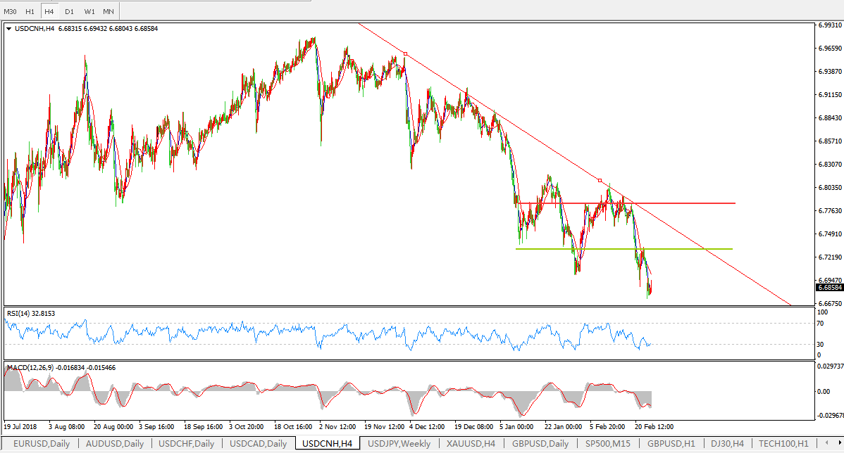 美元兑人民币USDCNH  4小时图: