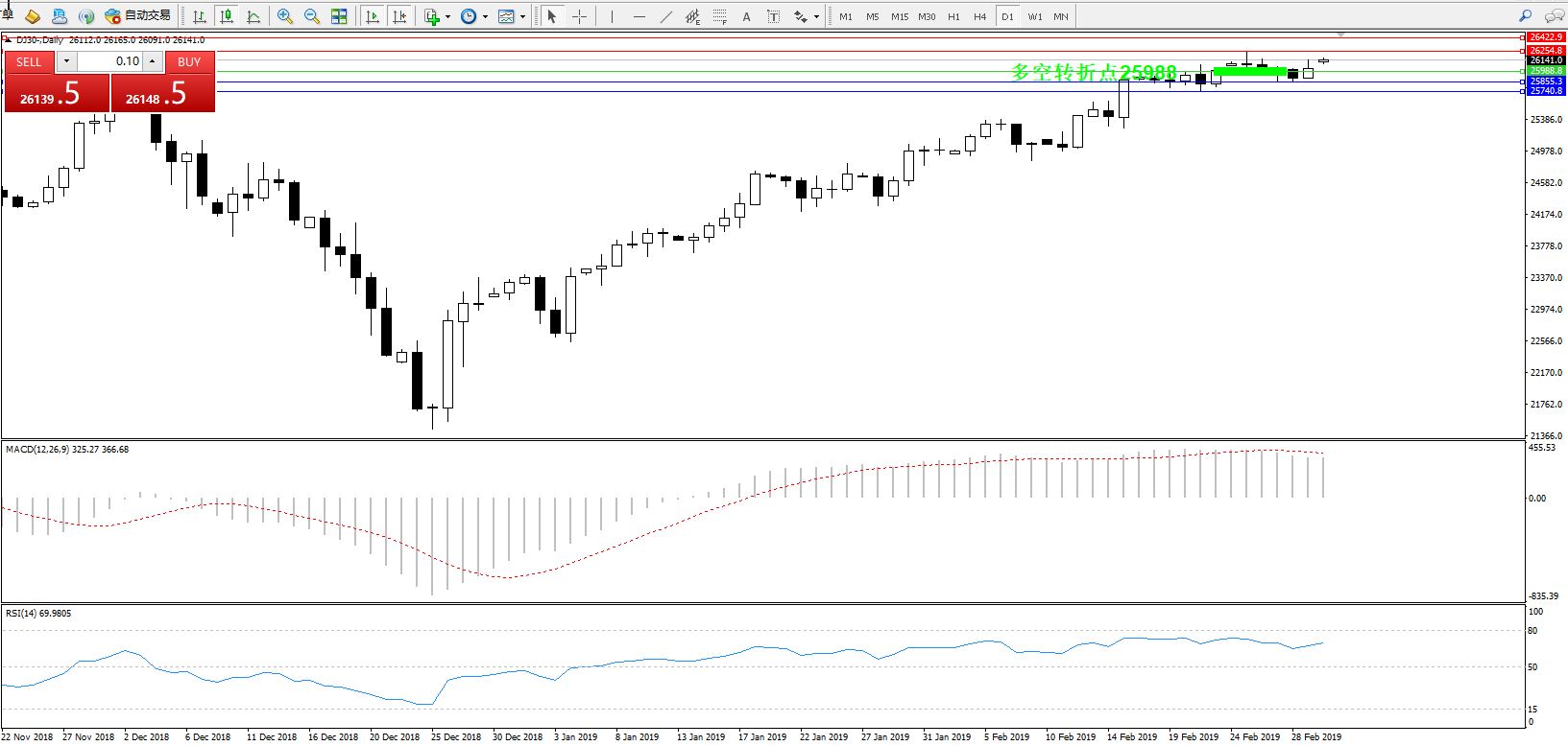 道琼斯工业平均指数收涨110.32点,涨幅0.43%,报26026.32点。道指结束连涨九周的表现,纳指连涨10周创1999年后期以来最长连涨周数,美国股市收高,道琼工业指数结束三日连跌的颓势,因市场乐观预计中美将达成贸易协议,这盖过美国和中国制造业数据疲弱带来的拖累。在美国总统特朗普上周末宣布推迟上调中国输美商品关税后,特朗普和中国国家主席习近平可能最早於3月中举行峰会,签署一份最终的贸易协议。