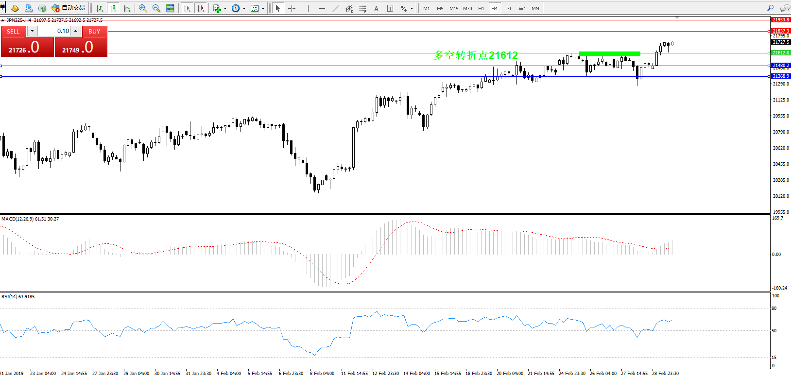 交易策略:21612上方看涨,目标21837、21953