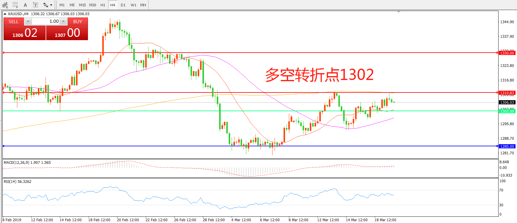多空转折点:1302.00