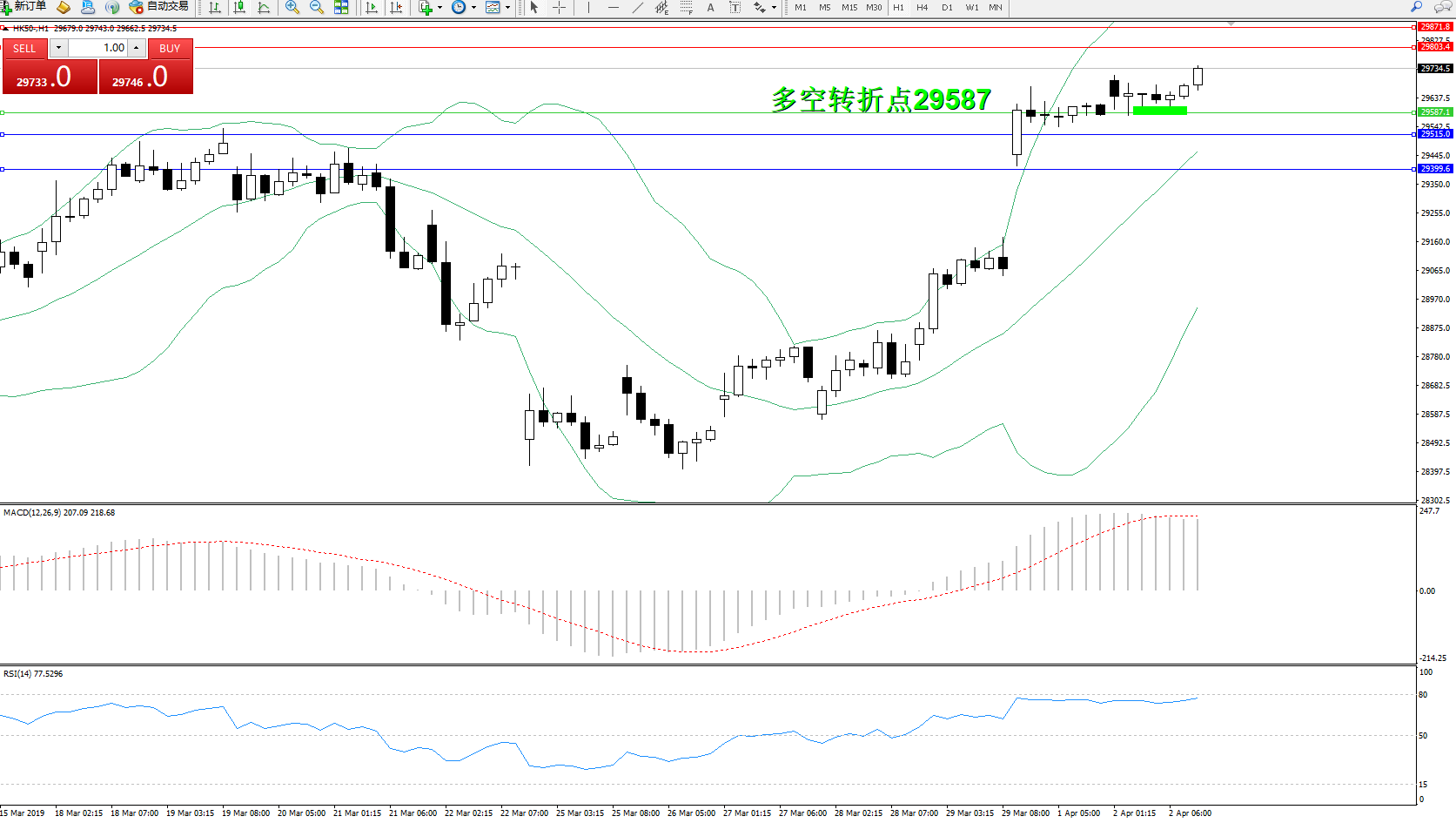 恒指HK50 ——1小时K线图显示: