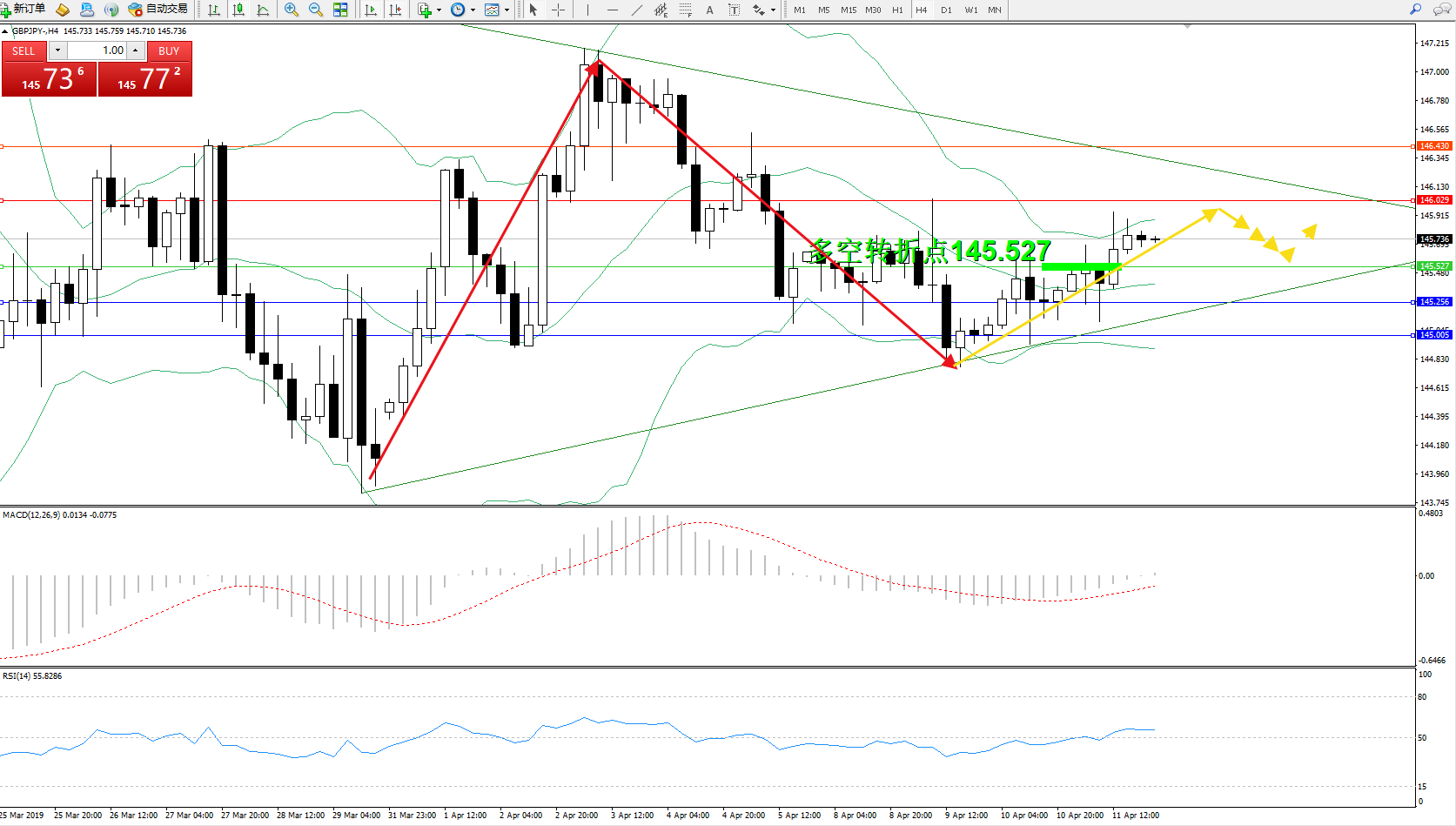 交易策略:145.527上方看涨,目标146.029、146.430