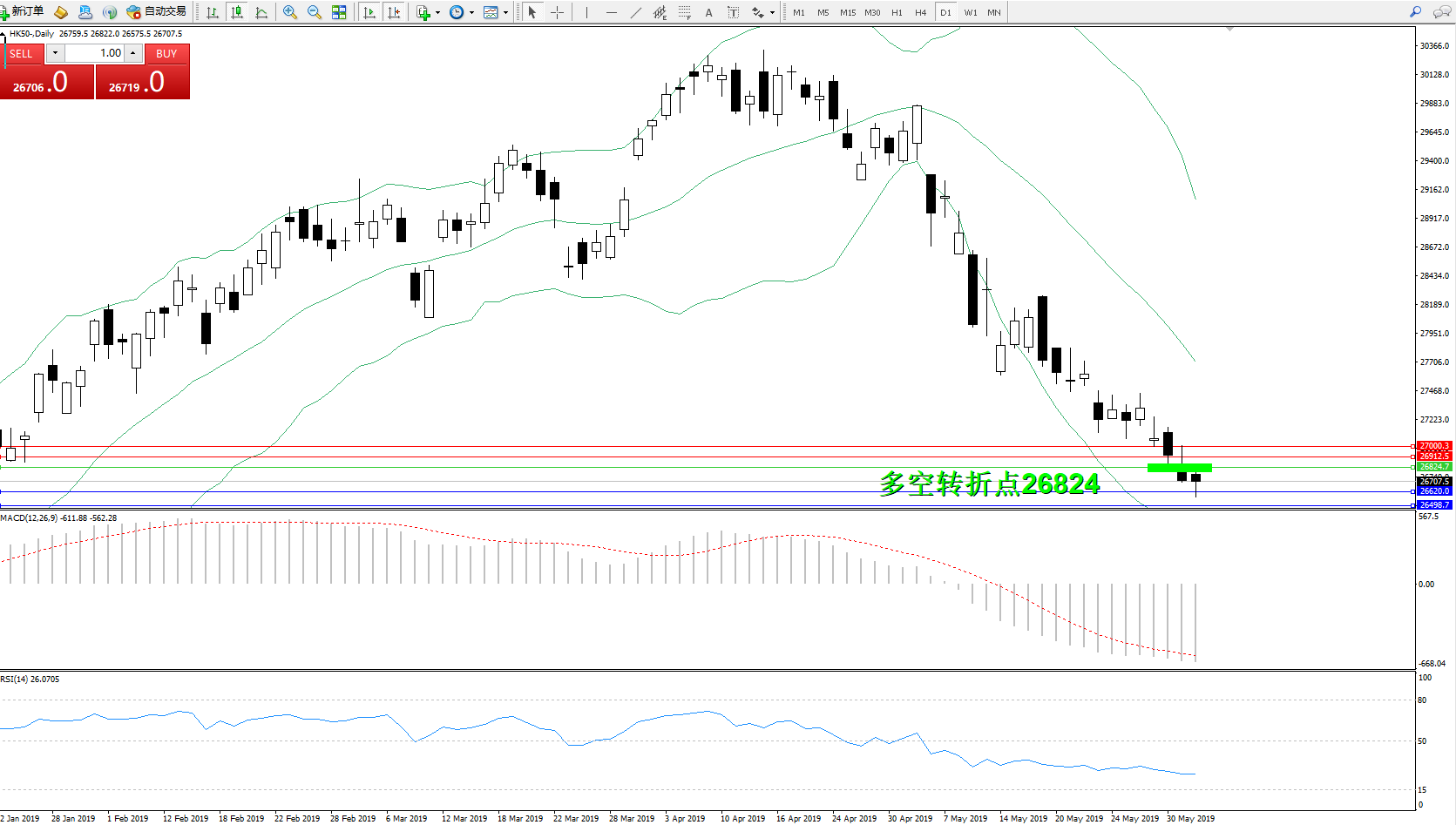 交易策略:26824下方看跌,目标26620、26498