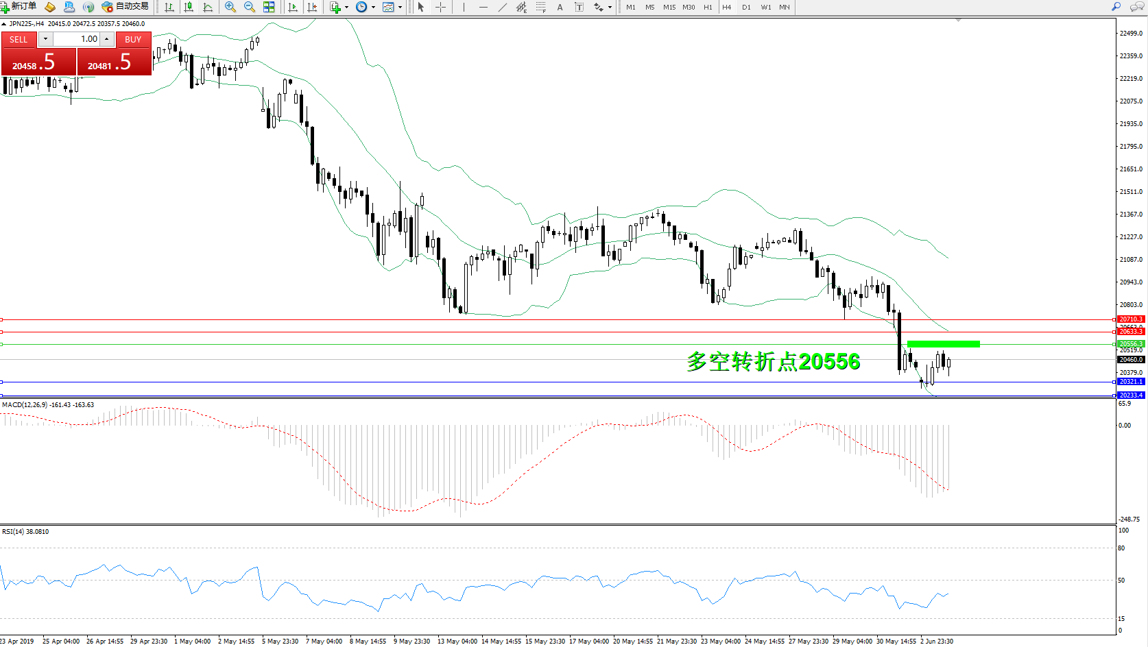 日经指数JPN225——4小时K线图: