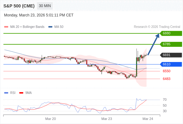 在 6610 之上,看涨,目标价位为 6785 ,然后为 6880 。