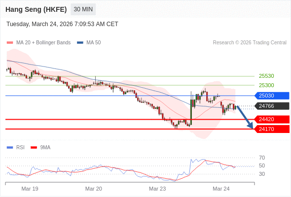 在 25030 之下,看跌,目标价位为 24420 ,然后为 24170 。