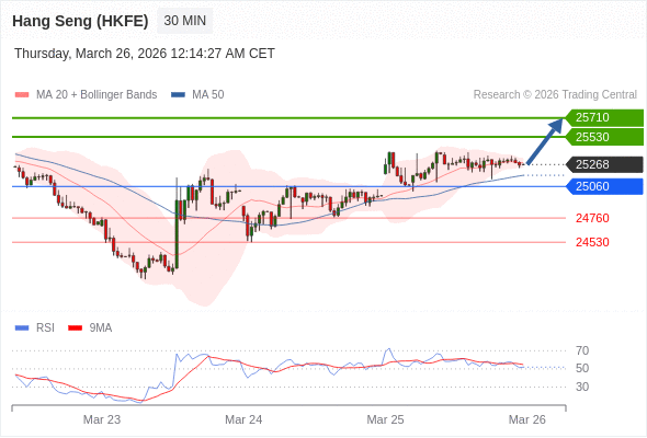 在 25060 之上,看涨,目标价位为 25530 ,然后为 25710 。