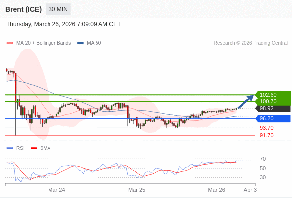 在 96.20 之上,看涨,目标价位为 100.70 ,然后为 102.60 。