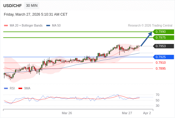 在 0.7925 之上,看涨,目标价位为 0.7975 ,然后为 0.7990 。