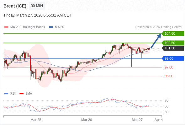 交易策略: 在 99.00 之上,看涨,目标价位为 102.50 ,然后为 104.60 。