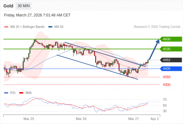 在 4405 之上,看涨,目标价位为 4535 ,然后为 4600 。