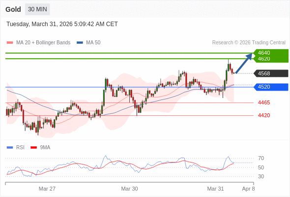 在 4520 之上,看涨,目标价位为 4620 ,然后为 4640 。