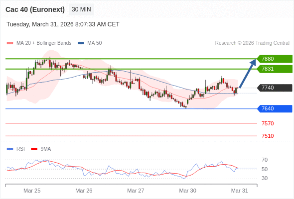 在 7640 之上,看涨,目标价位为 7831 ,然后为 7880 。