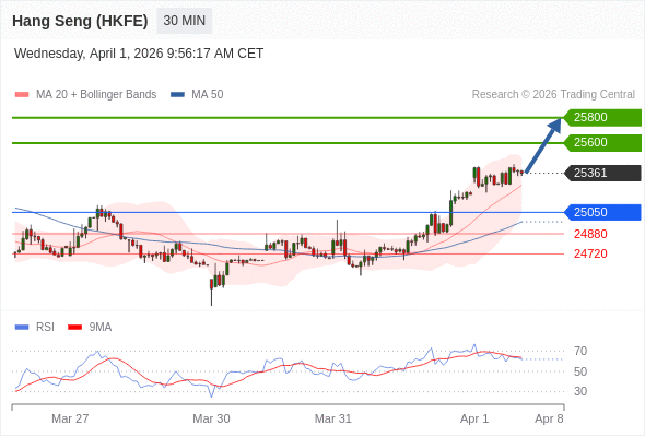 在 25050 之上,看涨,目标价位为 25600 ,然后为 25800 。