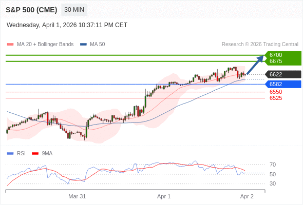 在 6582 之上,看涨,目标价位为 6675 ,然后为 6700 。