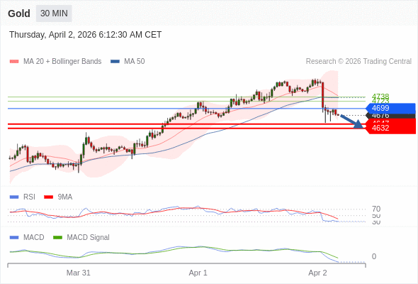 备选策略: 如突破 4699 ,Gold 目标方向为 4723 和 4738 。
