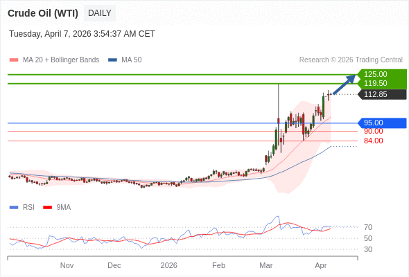 交易策略: 在 95.00 之上,看涨,目标价位为 119.50 ,然后为 125.00 。
