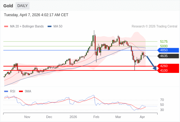 在 4850 之下,看跌,目标价位为 4260 ,然后为 4100 。