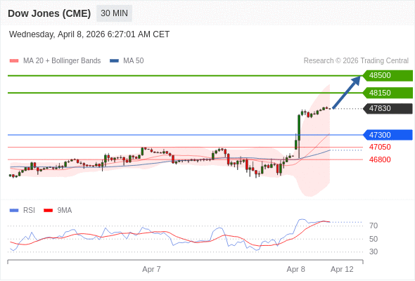 在 47300 之上,看涨,目标价位为 48150 ,然后为 48500 。