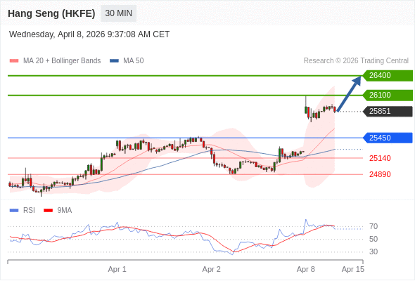 在 25450 之上,看涨,目标价位为 26100 ,然后为 26400 。