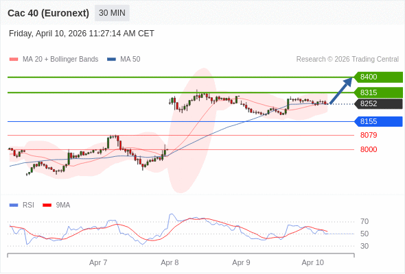 法国CAC指数期货 (Euronext) (J6) 当日内: 超短线(当日内)支撑位在8155附近。