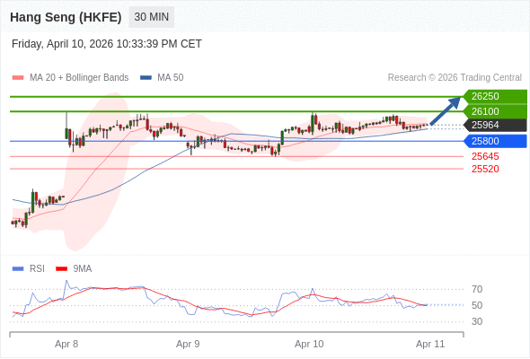 在 25800 之上,看涨,目标价位为 26100 ,然后为 26250 。