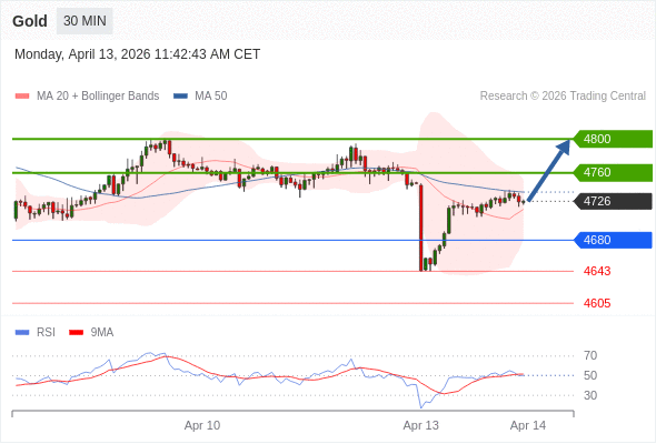 在 4680 之上,看涨,目标价位为 4760 ,然后为 4800 。
