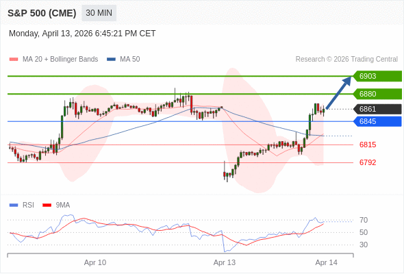 在 6845 之上,看涨,目标价位为 6880 ,然后为 6903 。