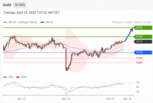 在 4725 之上,看涨,目标价位为 4795 ,然后为 4835 。