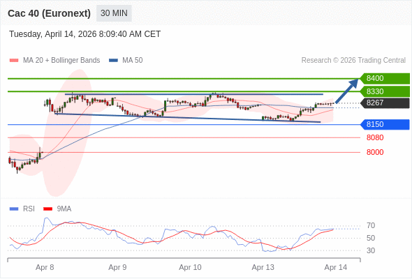 在 8150 之上,看涨,目标价位为 8330 ,然后为 8400 。