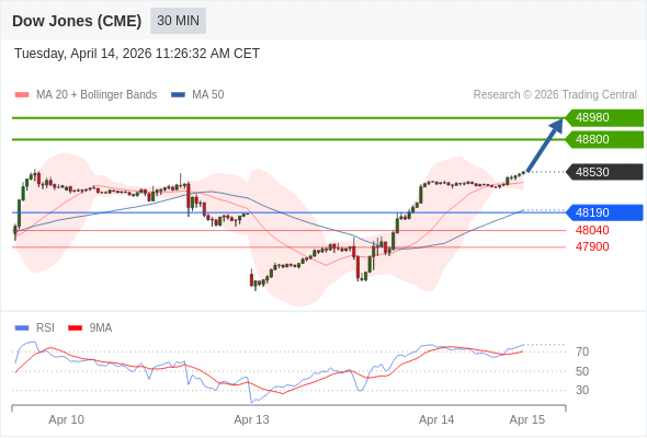 在 48190 之上,看涨,目标价位为 48800 ,然后为 48980 。