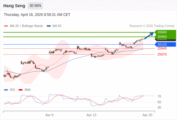 恒生指数 当日内: 期待26660。