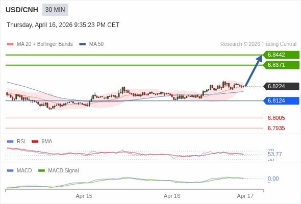 替代方案: 在6.8124以下,期待6.8005和6.7935。