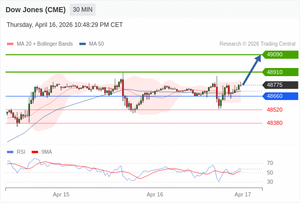 在 48660 之上,看涨,目标价位为 48910 ,然后为 49090 。
