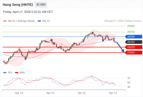 交易策略: 在 26290 之下,看跌,目标价位为 26020 ,然后为 25880 。