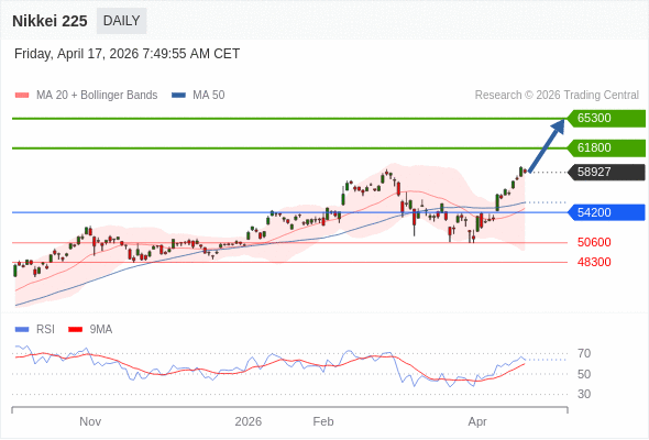 Nikkei 225 短线: 朝65300运行。
