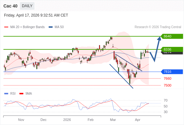 Cac 40 短线: 期待8336。