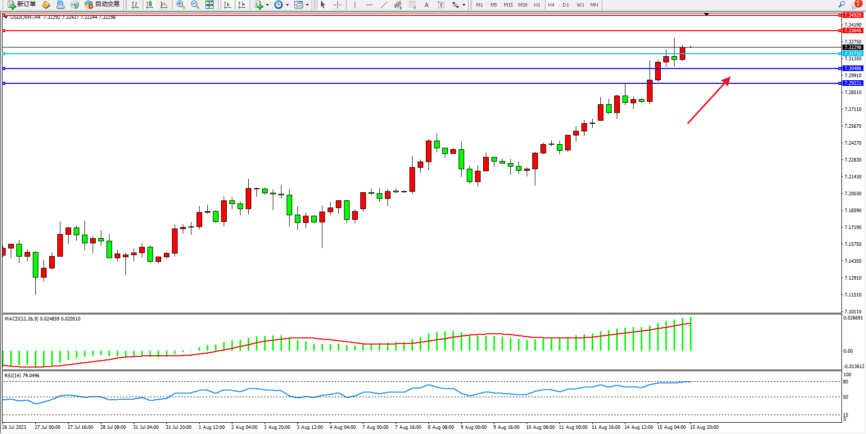 交易策略:7.31710上方看涨,目标7.33646  7.34929