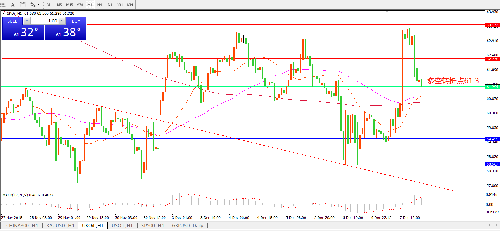 多空转折点:61.30