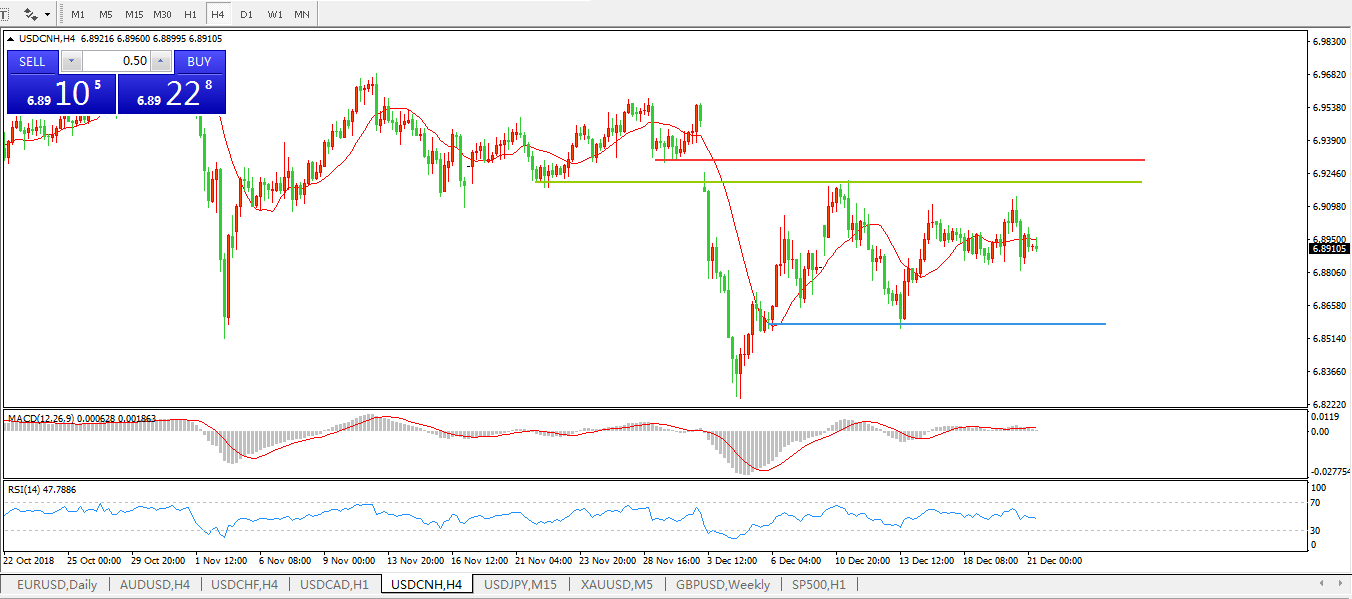 美元兑人民币USDCNH4小时图: