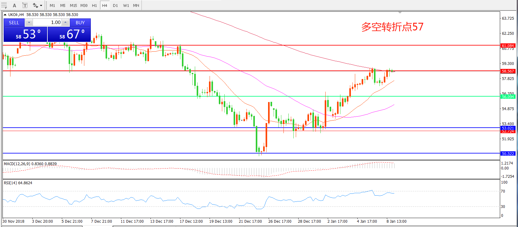 阻力位:58.00 61.00
