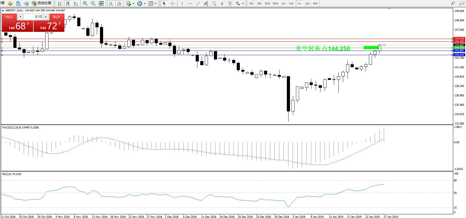 交易策略:144.250上方看涨,目标145.182145.626