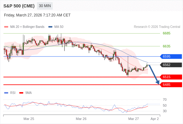 美国标普500指数期货 (M6) 当日内: 短期关键阻力位在6595。
