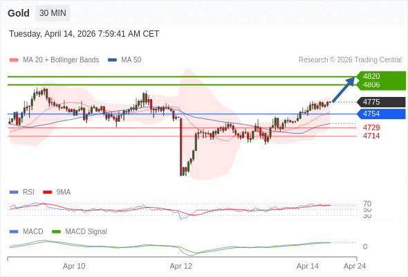 Gold 当日内: 看涨,当 4754 为支撑位。