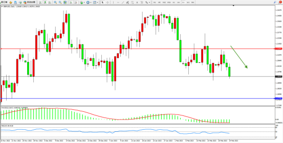 空头动力维持阶梯震荡下移,短期跌势未见止步,市场空头情绪笼罩,有继续向下移动态势,上方压制关注1.21541附近,低位支撑关注1.17752附近,MACD指标处于空头区域维持整理,RSI指标处于50均衡线下侧徘徊;