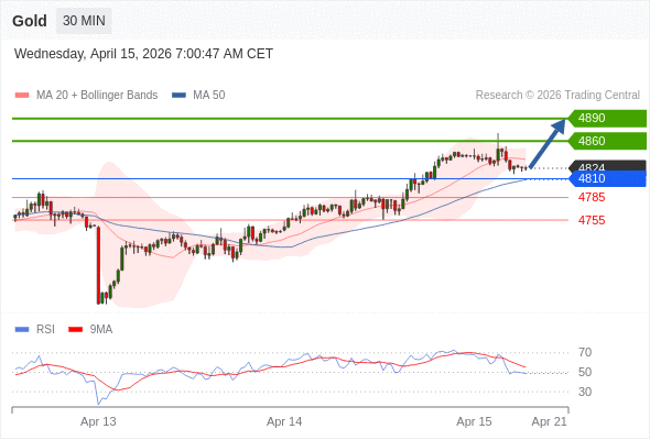 在 4810 之上,看涨,目标价位为 4860 ,然后为 4890 。